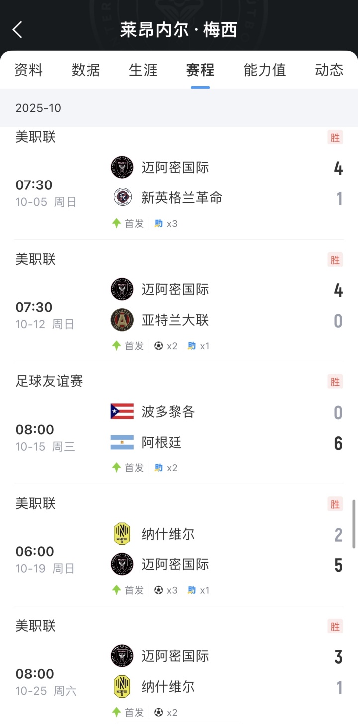疯狂!梅西近9场12球12助,场场有进球or助攻,期间8胜仅输1场 心有余而力不足!迈阿密季后赛连场4-0,苏牙上场停赛本场失单刀 西蒙尼:球队正在按照我们期望的方式进行比赛,必须保持这种势头 打入制胜球,普利西奇社媒晒庆祝照:今晚米兰城涂上一抹红色! 马斯切拉诺:苏牙接受替补的态度令人钦佩 梅西无球表现不可思议 再进一步!赛季结束将退役的阿尔巴、布斯克茨,随队继续冲击冠军 马卡:贝蒂斯将对安东尼红牌提出上诉,力争让他参加下周的德比战 前意甲裁判:国米获得点球是正确的,帕夫洛维奇吃黄牌也是正确的 梅西社媒:全队发挥出色,击败了总是让我们陷入苦战的对手 名宿:上赛季赫拉芬贝赫是表现最好球员之一,但本赛季不尽如人意 弗兰克:我们在这场比赛中表现不佳,我非常失望,我要向球迷道歉 进球助攻都拉满!38岁梅西进球戴帽场次有60场,助攻戴帽9场! 时隔3676天!罗马单独领跑意甲积分榜,上一次做到已经是10年前 号码就是评分!梅西近5场美职联比赛,其中3场获评10分 阿森西奥社媒鼓励球队:一场苦战未能取胜,现在要开启欧冠模式 足球报:海港夺冠穆斯卡特作用极大,需要在亚洲赛场展现战斗力 记者:浙江冬训计划基本确定,希望1月份内外援就已经到位 青少年精英联赛U21组第一轮赛果:北京国安、梅州客家迎大胜 早日康复!阿什拉夫观看皇马比赛+与朋友见面,仍依靠助行器走路 马卡:皇马球员与阿隆索的理念不和,更衣室发出的信号也不乐观