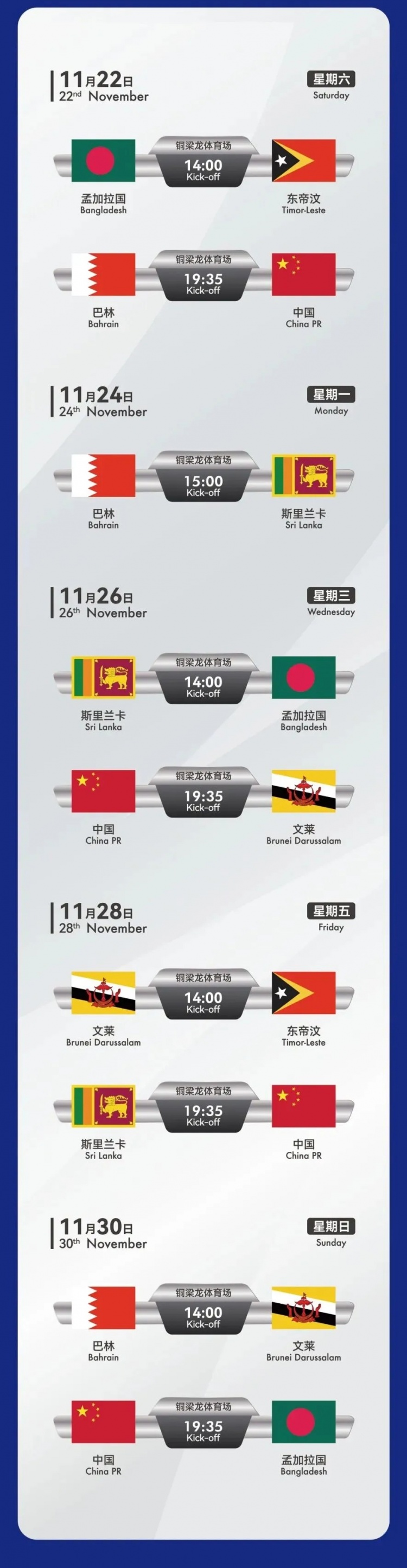 11月20日讯 国足U16将在11月22日-30日坐镇铜梁龙体育场,迎战与巴林、东帝汶、文莱、斯里兰卡和孟加拉国同组,小组头名将直接晋级U17亚洲杯决赛圈。